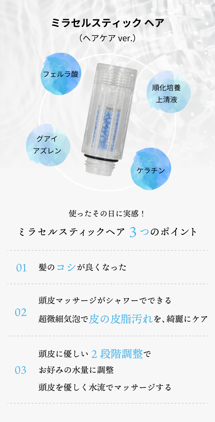 | 材質 | 本体:ポリカーボネート及びABSネジ及びバネ:ステンレス 吐出量: ●ストレート:7.5L/min マイクロバブル(直径30μm程度)約6000個/1cc ●ミスト:3.5L/min ウルトラファインバブル(直径130nm程度)約2000万個/1cc |